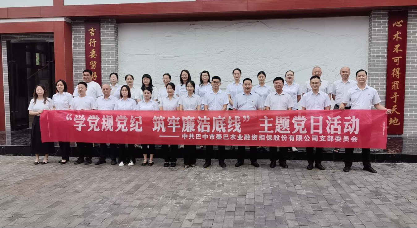 為扎實開展黨紀學習教育,不斷增強黨員干部紀律意識、規(guī)矩意識,筑牢拒腐防變的思想防線,6月21日上午,巴中市秦巴農業(yè)融資擔保股份有限公司黨支部組織公司全體黨員、干部職工到恩陽“問心堂”德廉教育基地開展“學習黨規(guī)黨紀、筑牢廉潔底線”黨紀學習主題黨日活動。